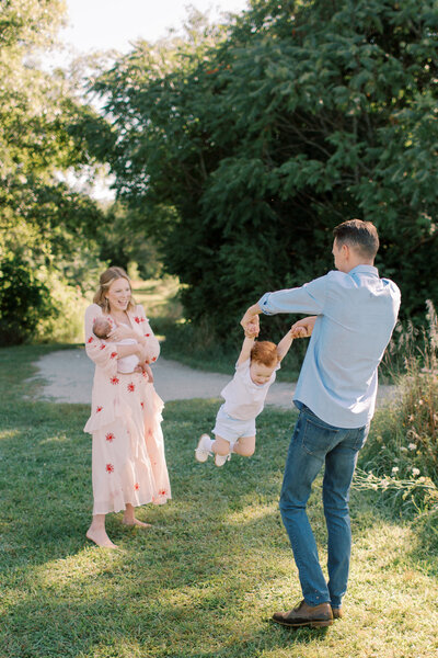 A family or couple session typically lasts about 30-60 minutes (depending on how kids do). When we can—I love to begin sessions about two or so hours before sunset. I prefer to shoot when the sun is lower in the sky to avoid harsh shadows and bright sun patches. If we need to schedule earlier in the evening due to bedtimes that is no biggie! I've done sessions at noon or 3 p.m. before and they still turned out lovely!